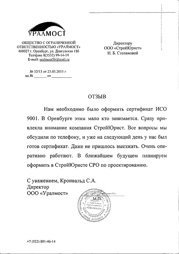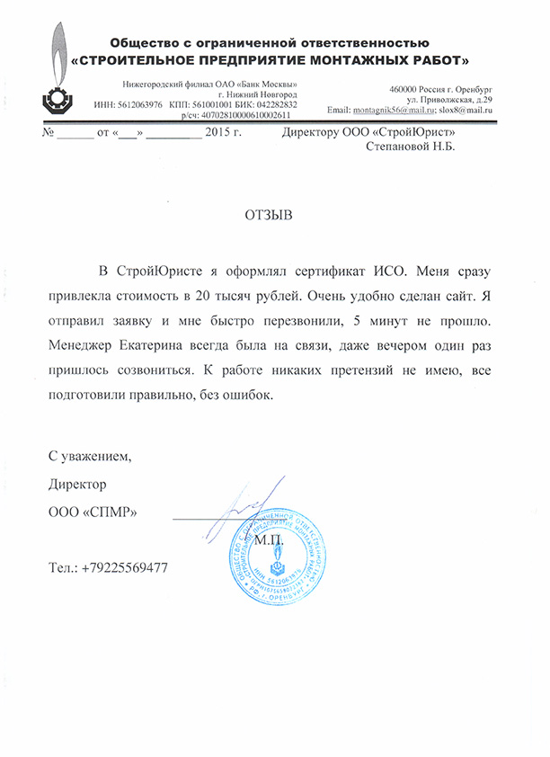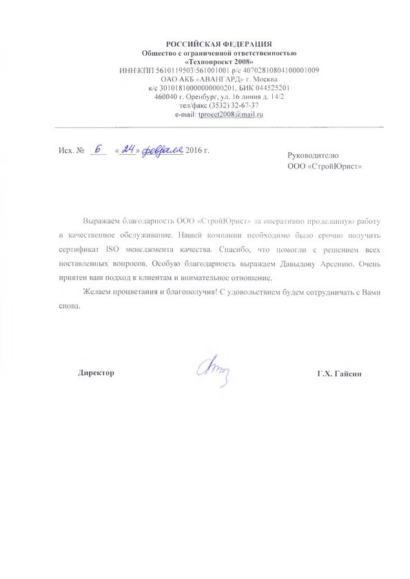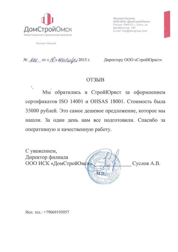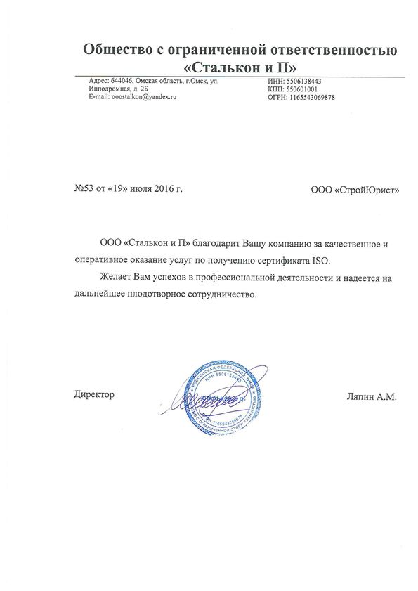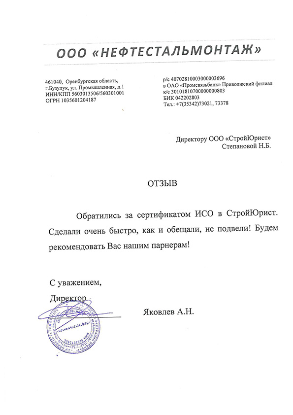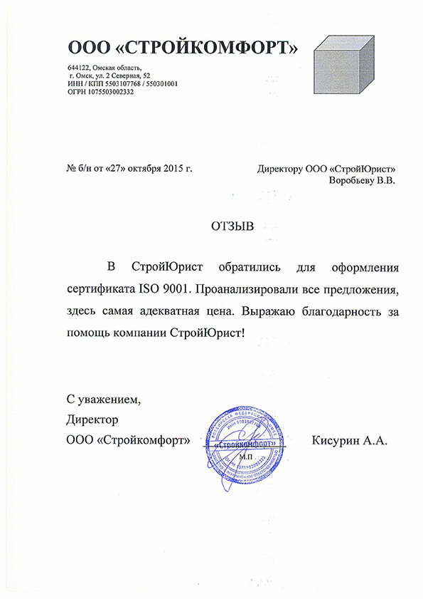 Отзывы клиентов "СтройЮрист" по ISO в Благовещенске