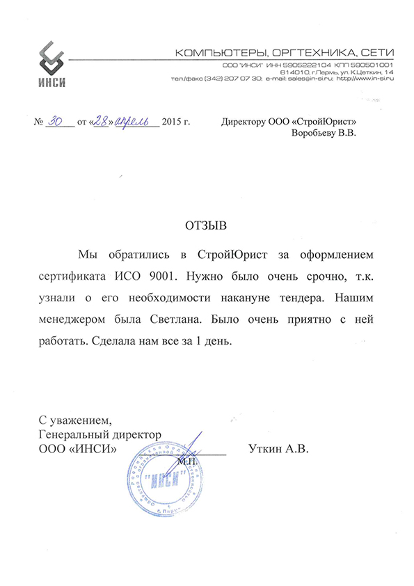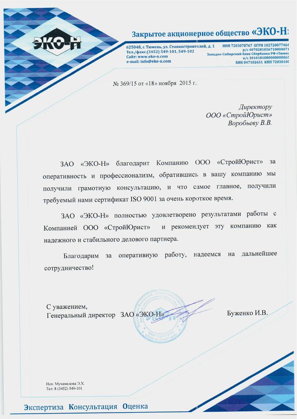 Отзывы клиентов "СтройЮрист" по ISO в Благовещенске