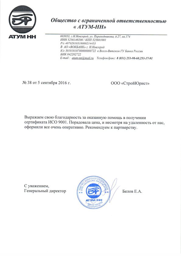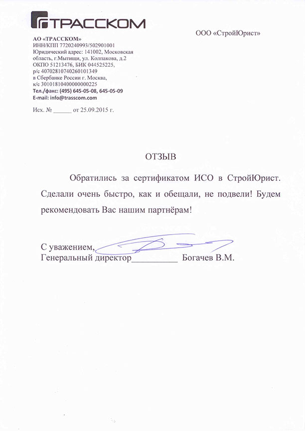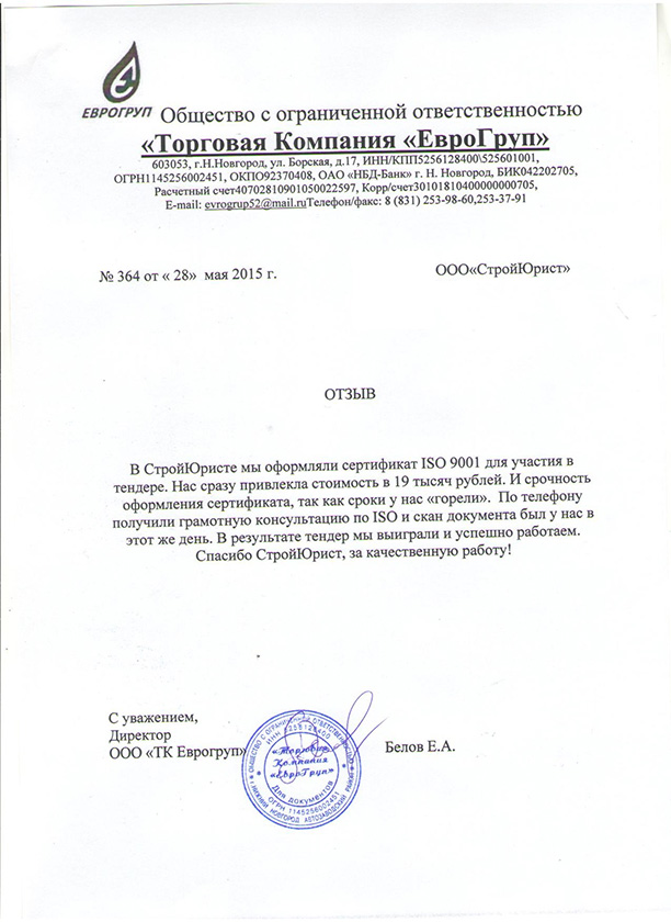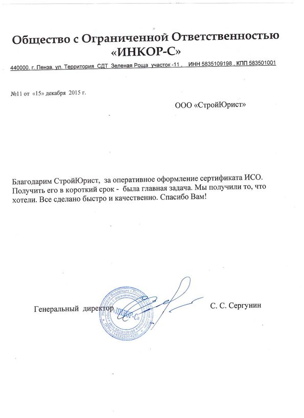 Отзывы клиентов "СтройЮрист" по ISO в Благовещенске
