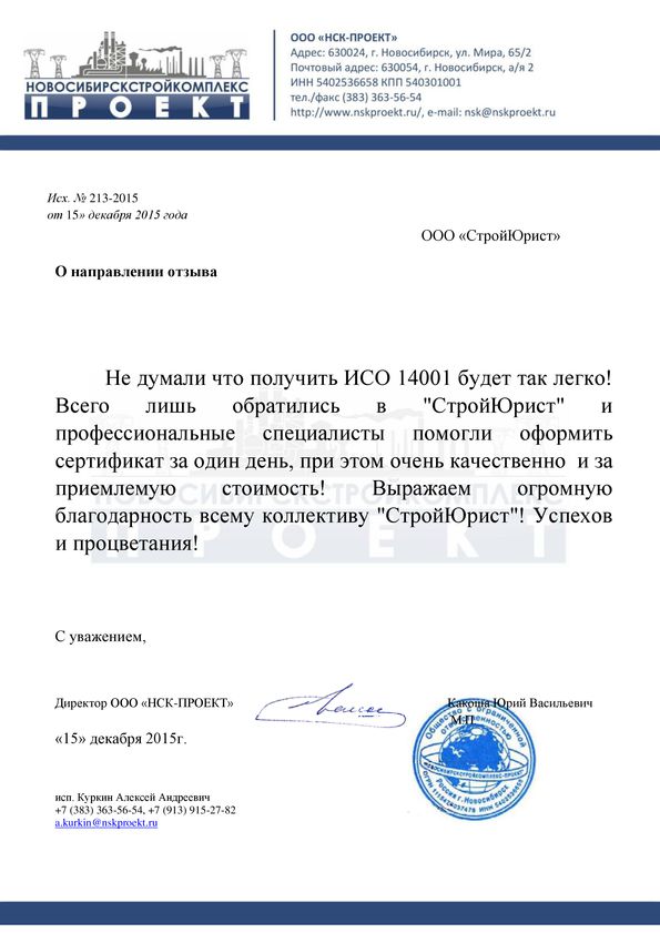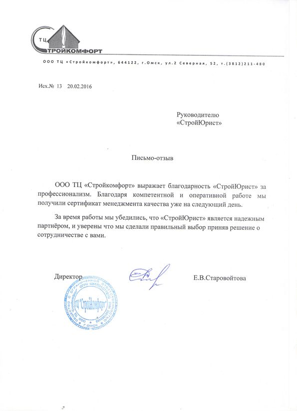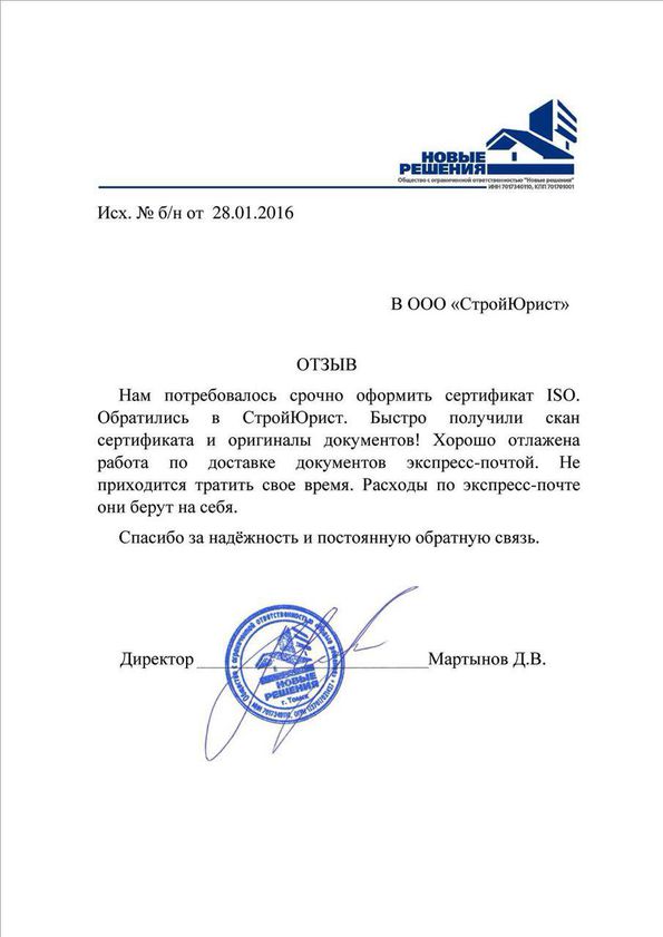 Отзывы клиентов "СтройЮрист" по ISO в Благовещенске