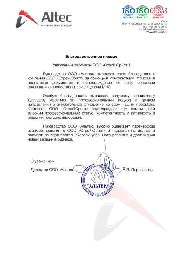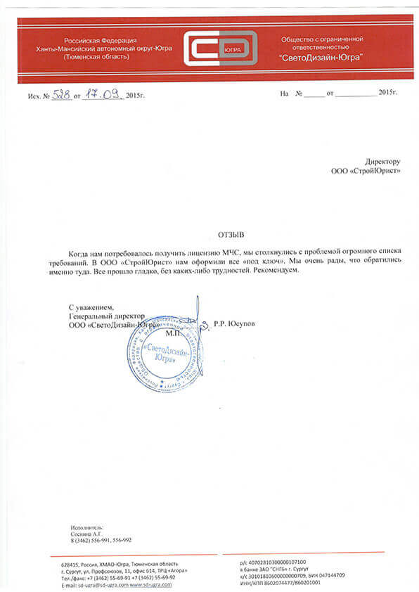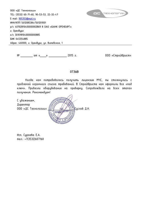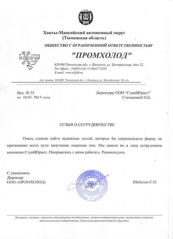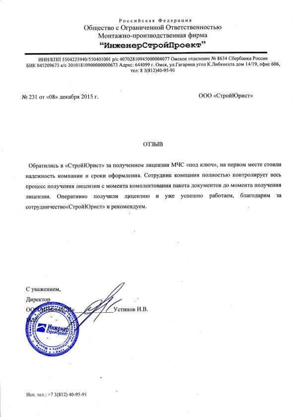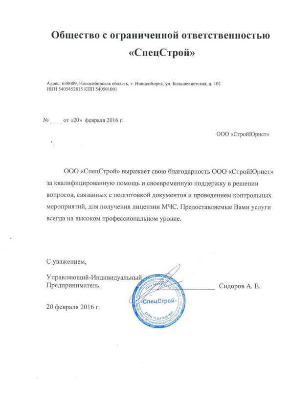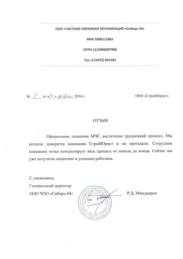 Отзывы клиентов "СтройЮрист" по лицензированию МЧС в Благовещенске