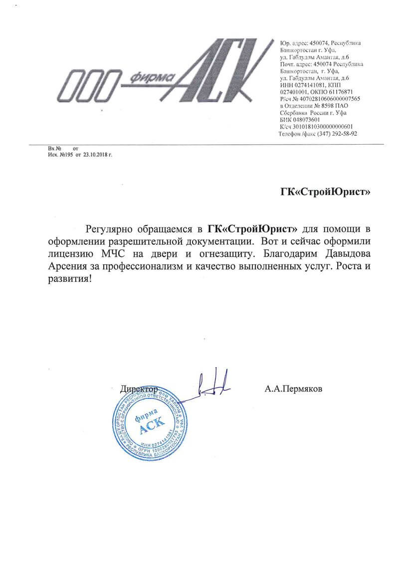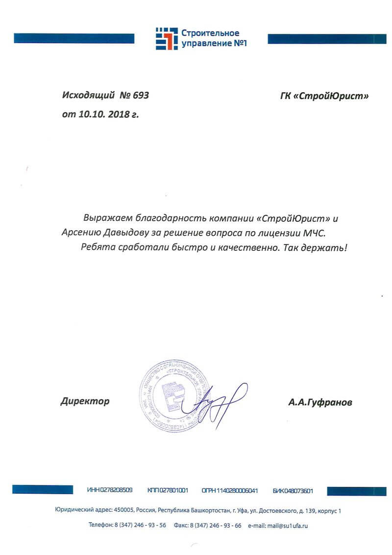 Отзывы клиентов "СтройЮрист" по лицензированию МЧС в Благовещенске