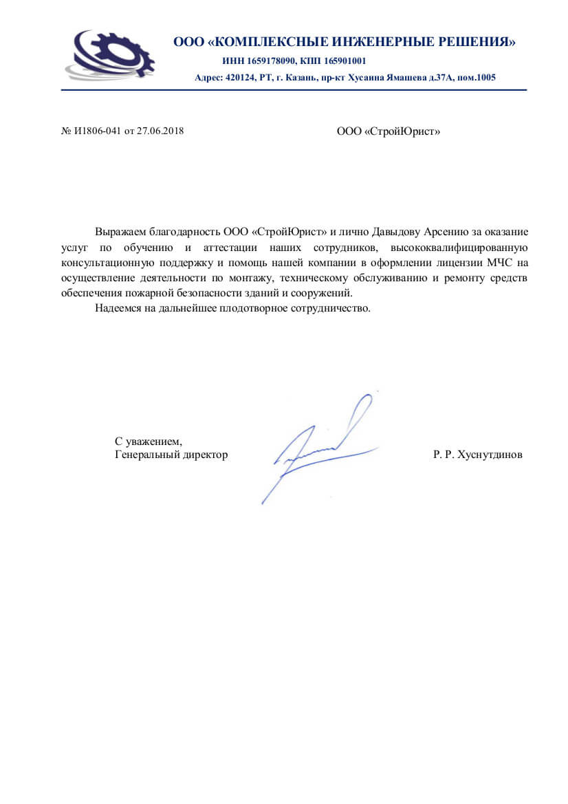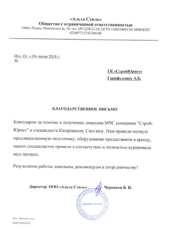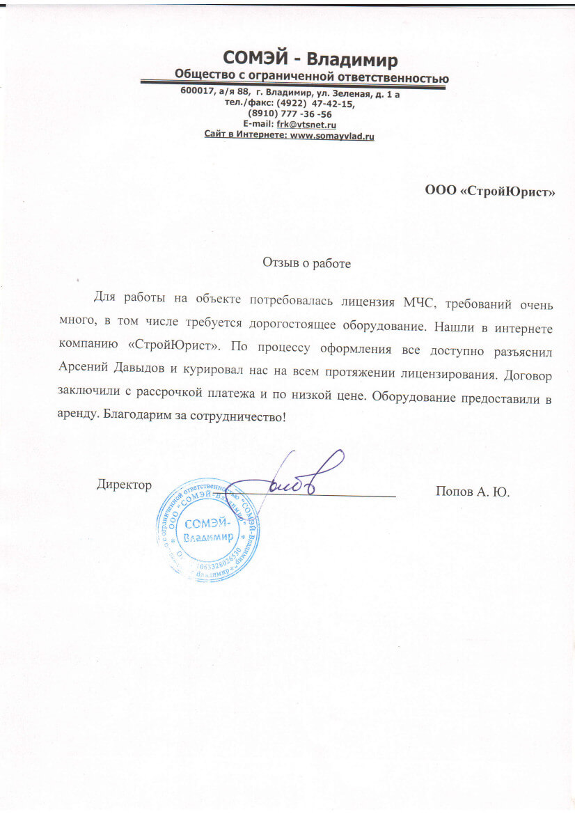 Отзывы клиентов "СтройЮрист" по лицензированию МЧС в Благовещенске