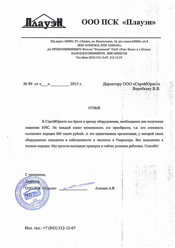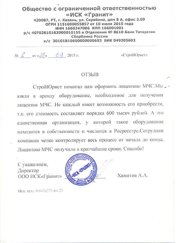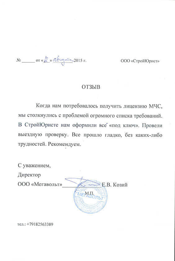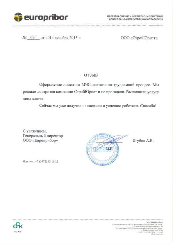 Отзывы клиентов "СтройЮрист" по лицензированию МЧС в Благовещенске