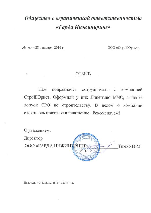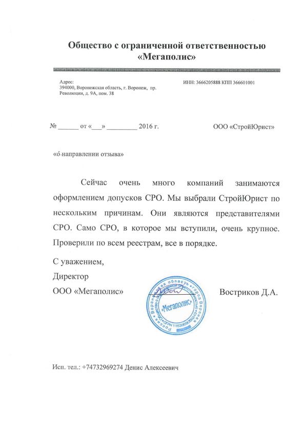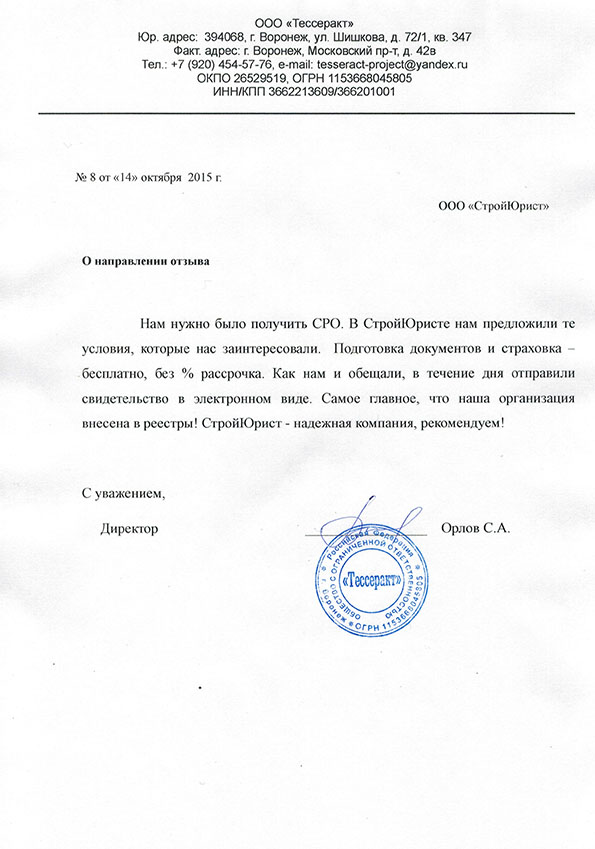 Отзывы клиентов "СтройЮрист" по вступлению в СРО в Благовещенске