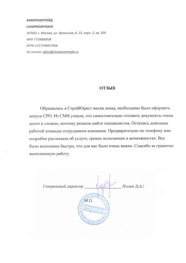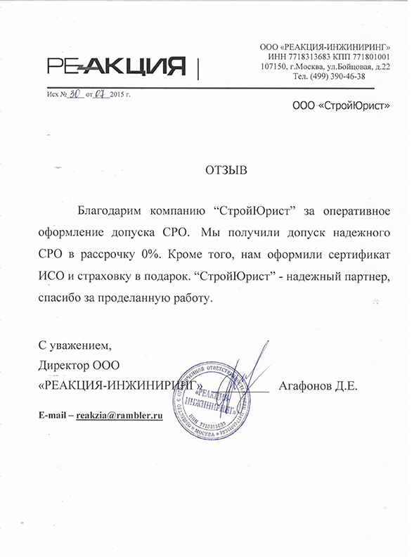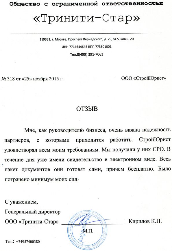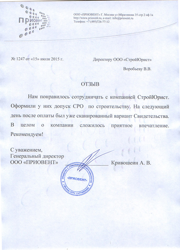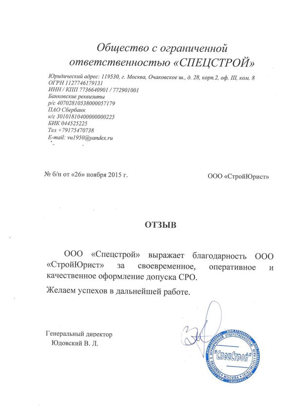 Отзывы клиентов "СтройЮрист" по вступлению в СРО в Благовещенске