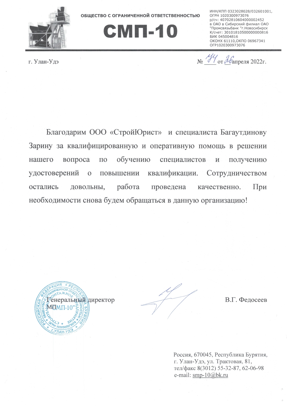 Отзывы клиентов "СтройЮрист" по вступлению в СРО в Благовещенске
