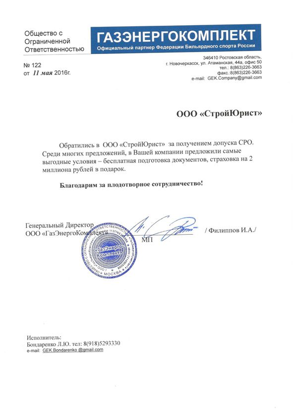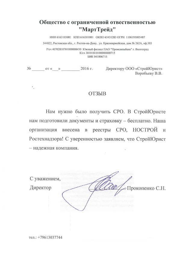 Отзывы клиентов "СтройЮрист" по вступлению в СРО в Благовещенске