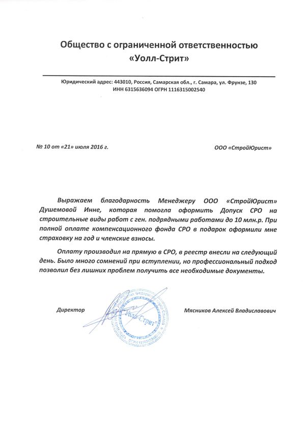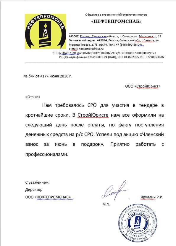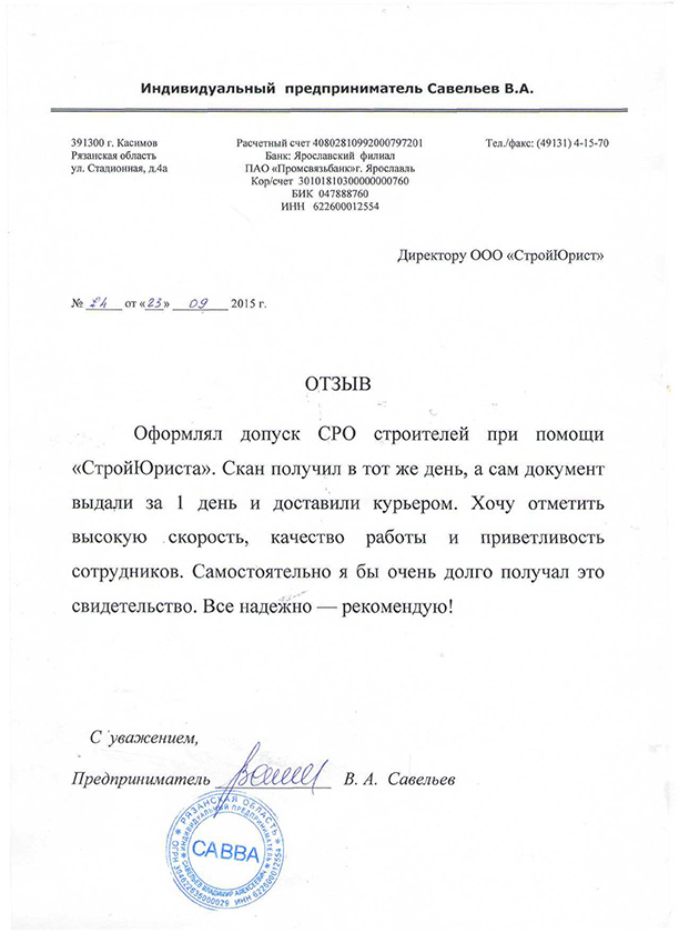 Отзывы клиентов "СтройЮрист" по вступлению в СРО в Благовещенске