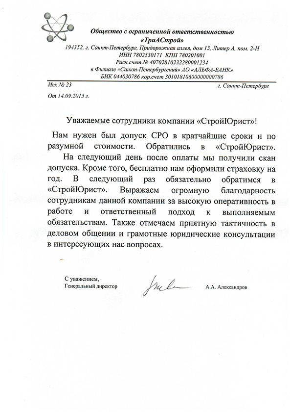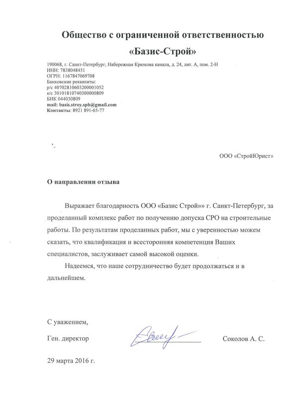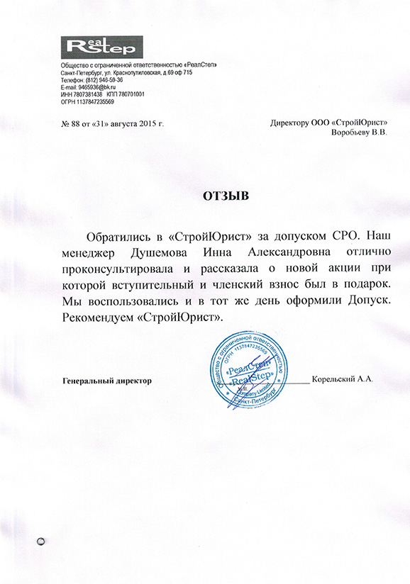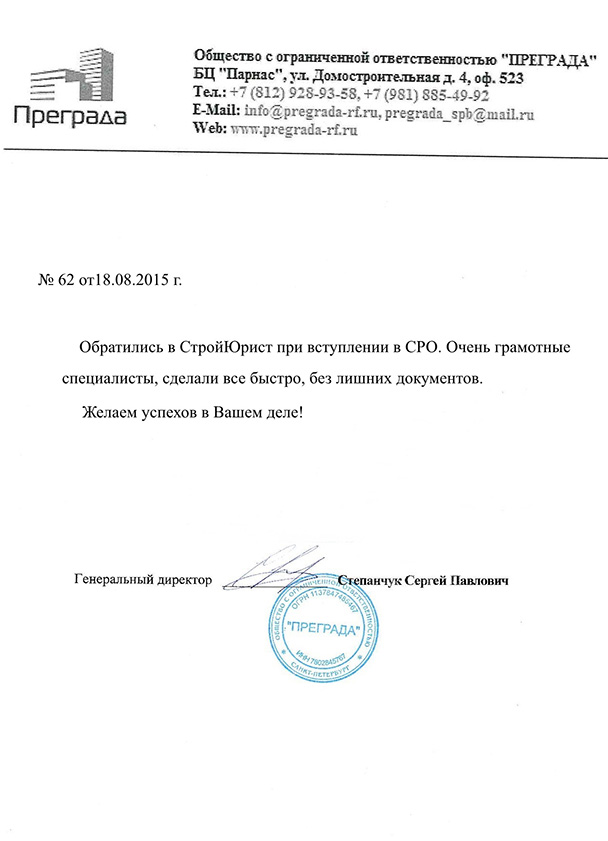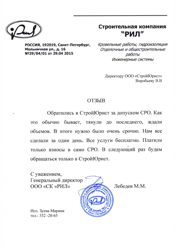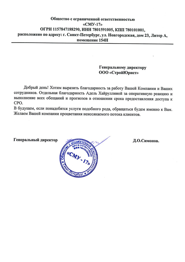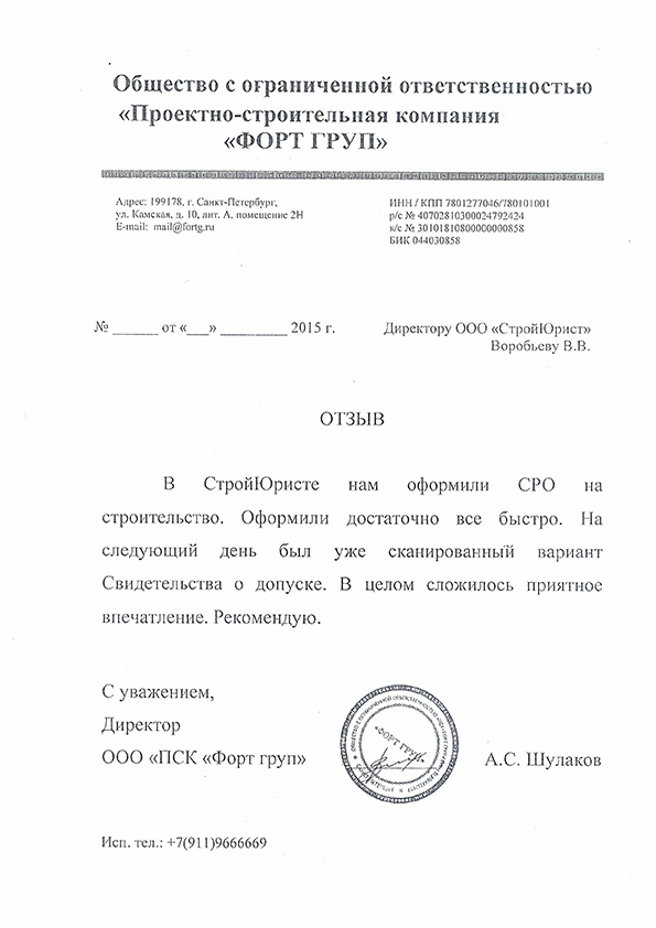 Отзывы клиентов "СтройЮрист" по вступлению в СРО в Благовещенске