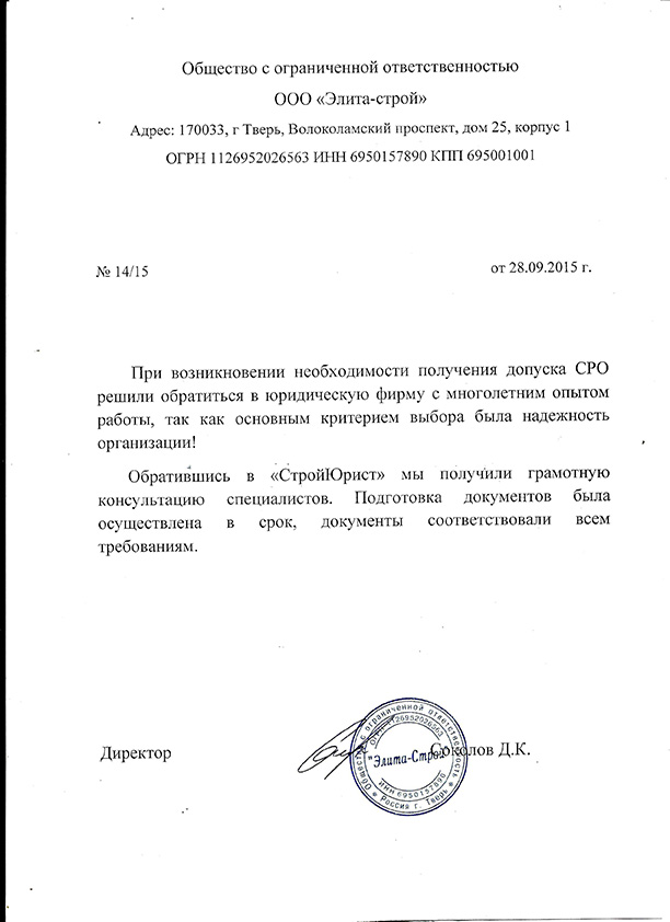 Отзывы клиентов "СтройЮрист" по вступлению в СРО в Благовещенске