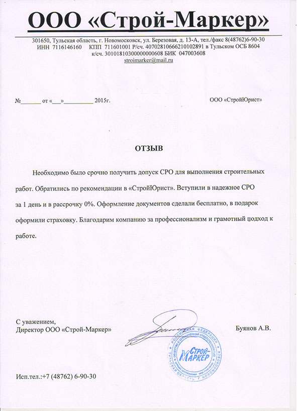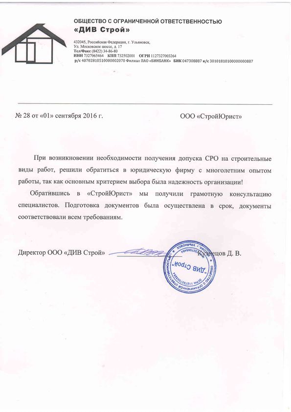Отзывы клиентов "СтройЮрист" по вступлению в СРО в Благовещенске