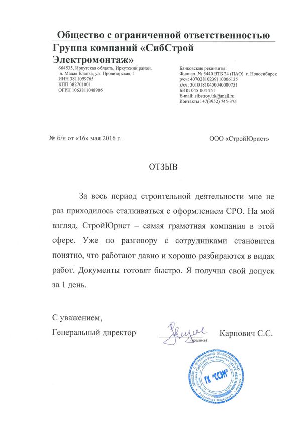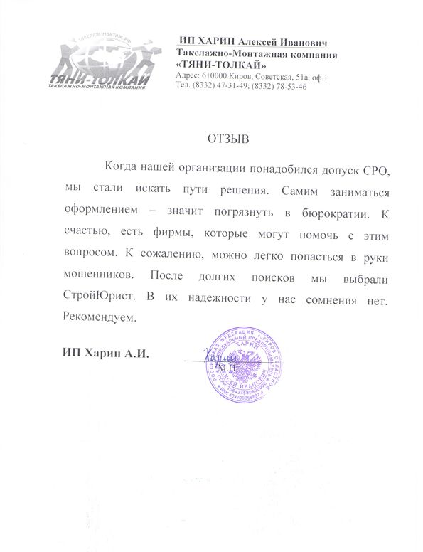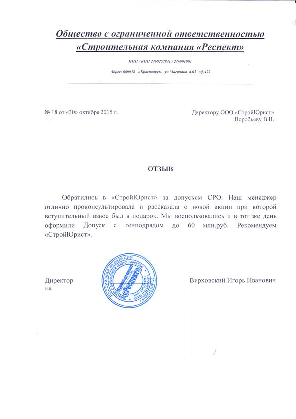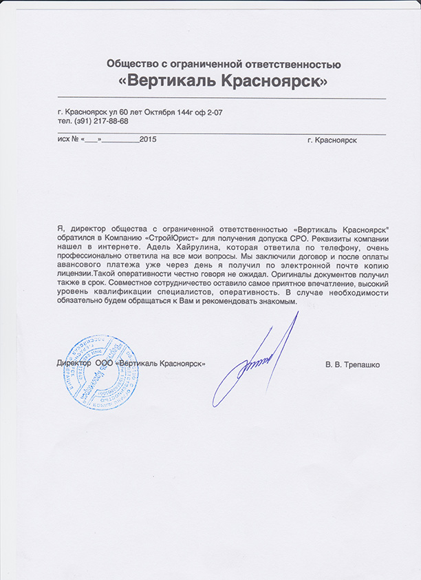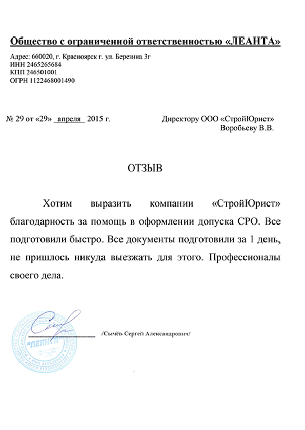 Отзывы клиентов "СтройЮрист" по вступлению в СРО в Благовещенске