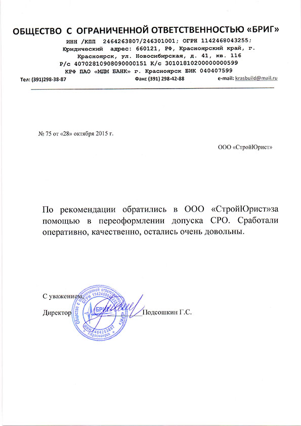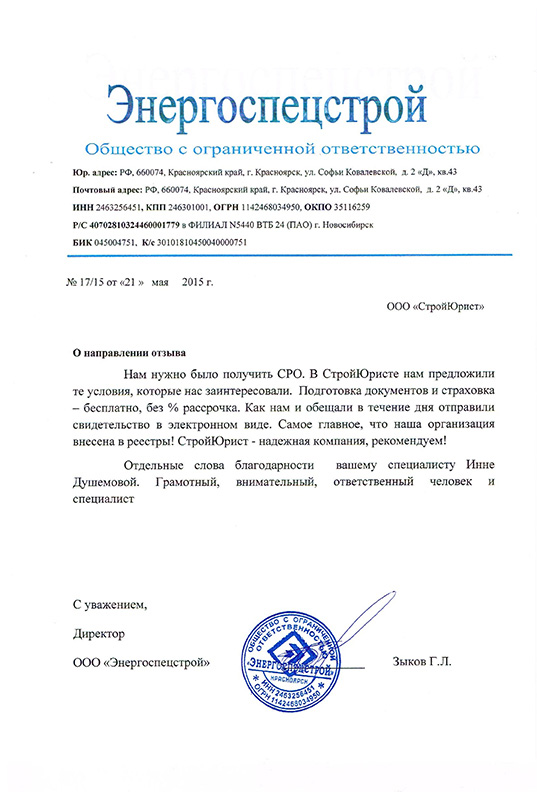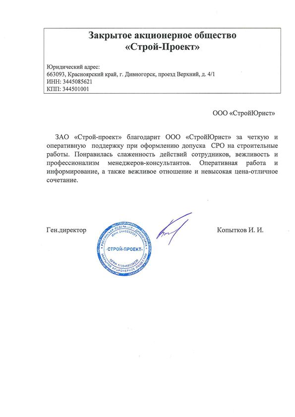 Отзывы клиентов "СтройЮрист" по вступлению в СРО в Благовещенске