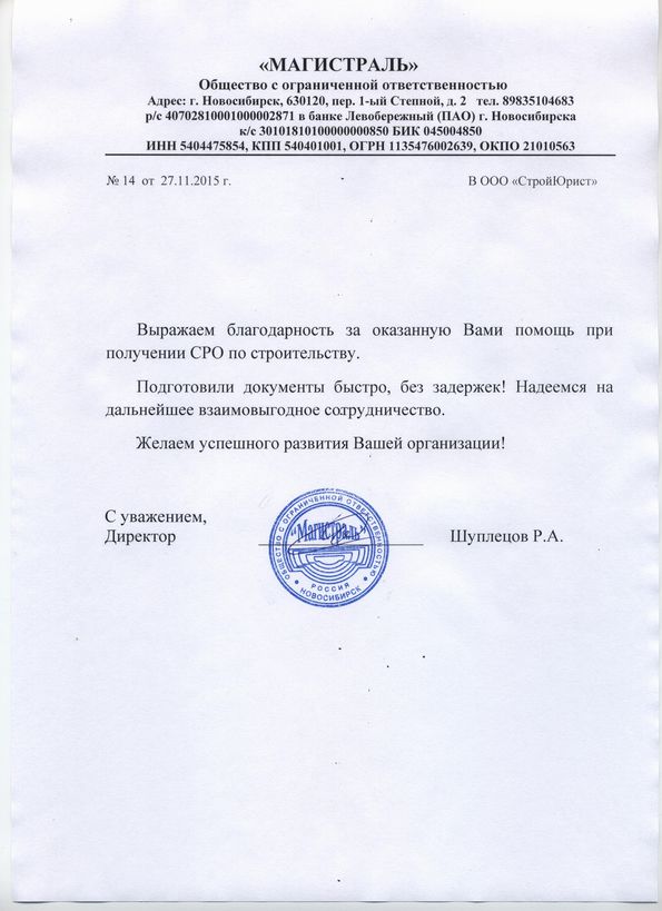 Отзывы клиентов "СтройЮрист" по вступлению в СРО в Благовещенске