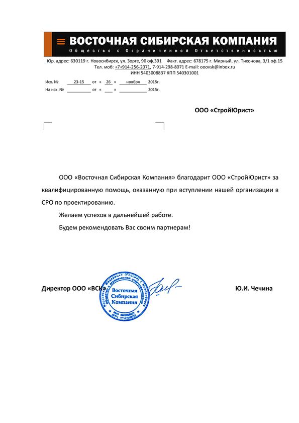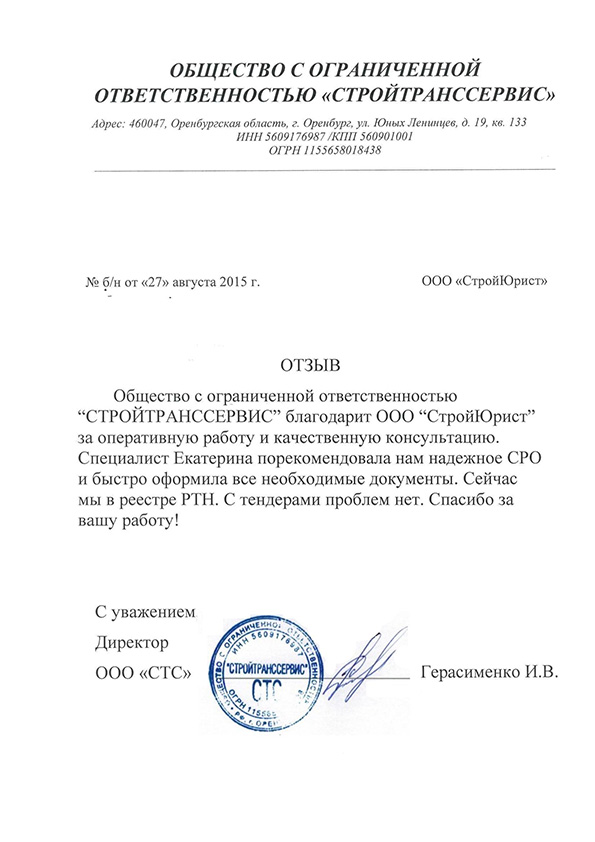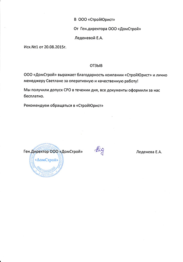 Отзывы клиентов "СтройЮрист" по вступлению в СРО в Благовещенске