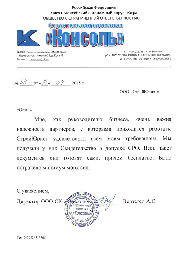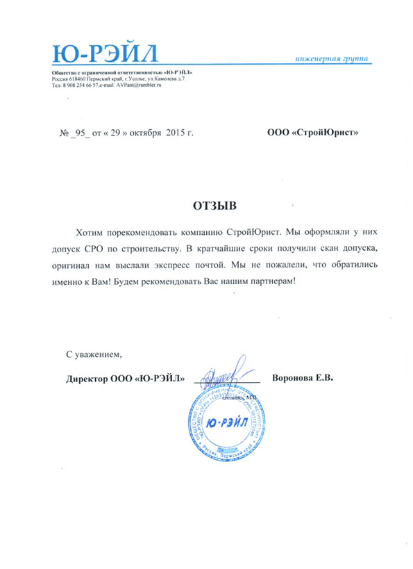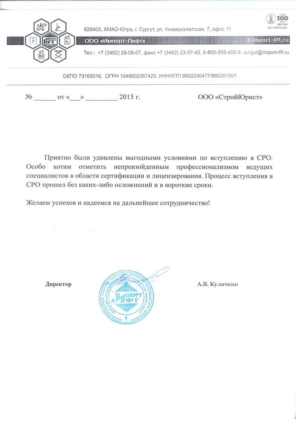 Отзывы клиентов "СтройЮрист" по вступлению в СРО в Благовещенске