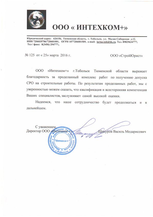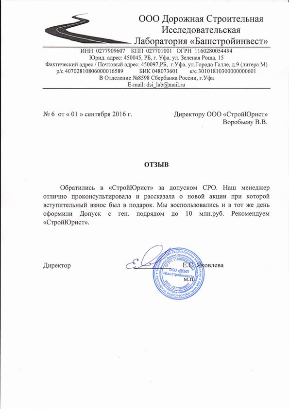 Отзывы клиентов "СтройЮрист" по вступлению в СРО в Благовещенске