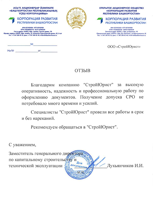 Отзывы клиентов "СтройЮрист" по вступлению в СРО в Благовещенске