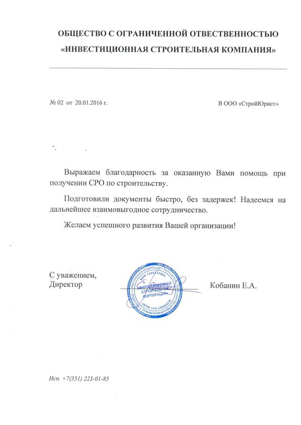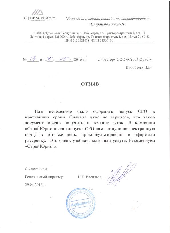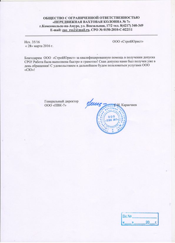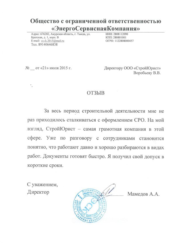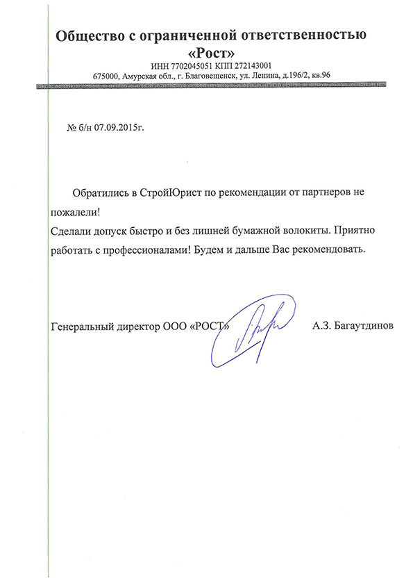 Отзывы клиентов "СтройЮрист" по вступлению в СРО в Благовещенске