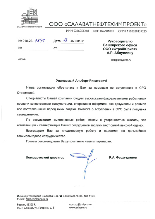 Отзывы клиентов "СтройЮрист" по вступлению в СРО в Благовещенске