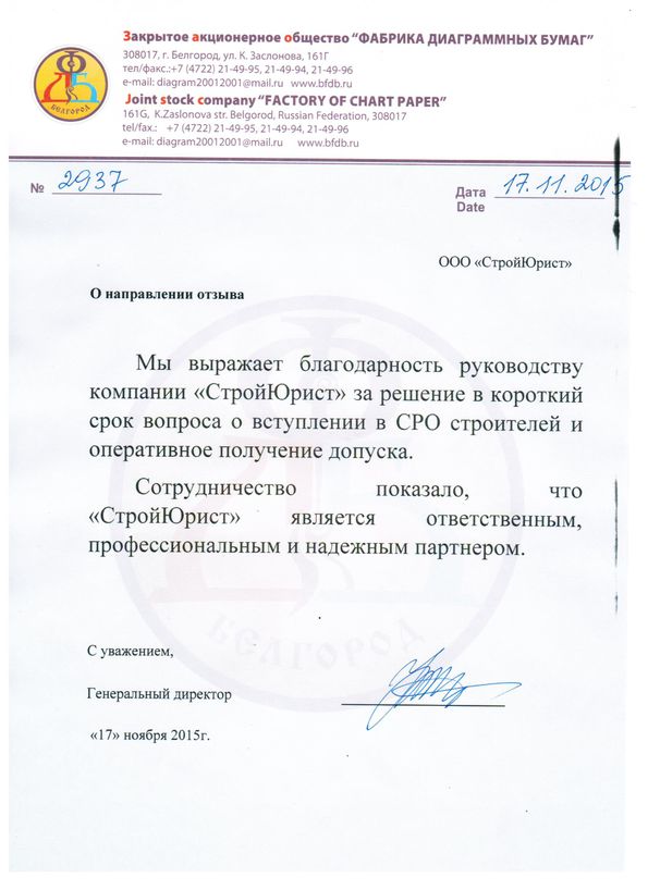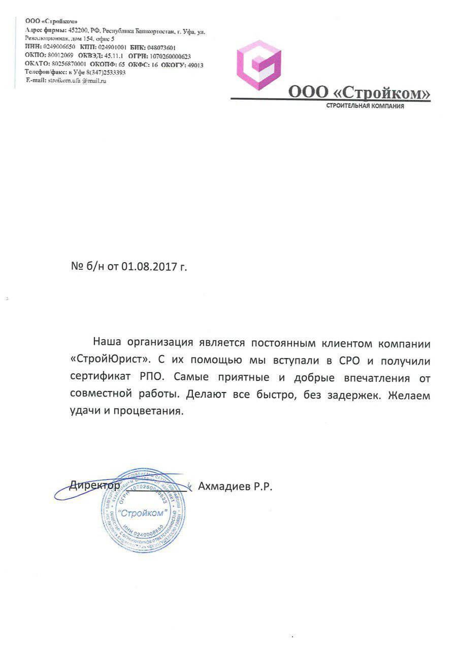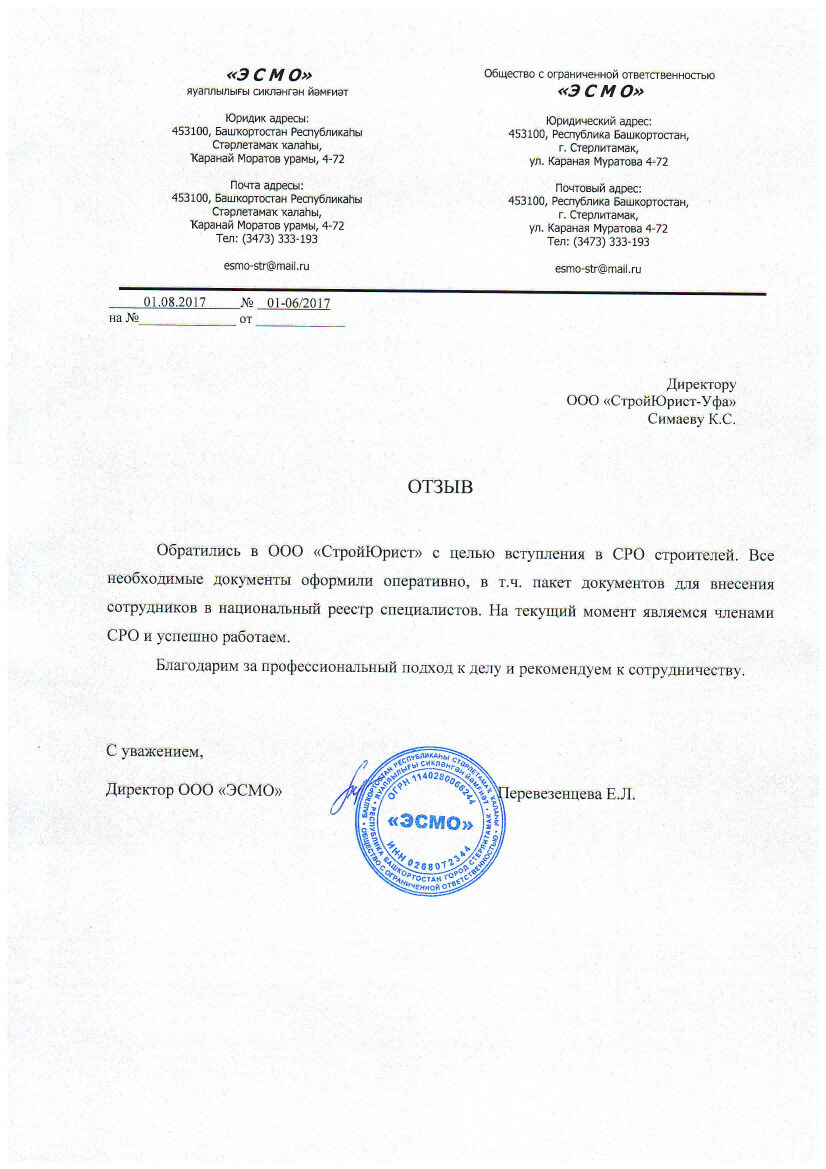 Отзывы клиентов "СтройЮрист" по вступлению в СРО в Благовещенске
